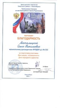 Ребята старшей и подготовительной групп, приняли участие в фестивале, посвященного Дню народного единства.